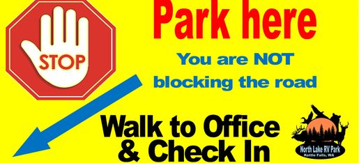 Please stay parked at this sign until you are escorted to your site. We hope you have a wonderful time camping with us.